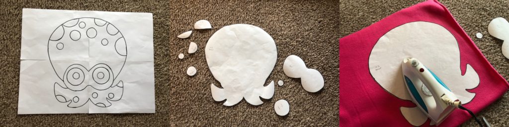 - Cut out 2 of the Octo pattern in the dark pink fabric for the front and back sides of the Octo plush.