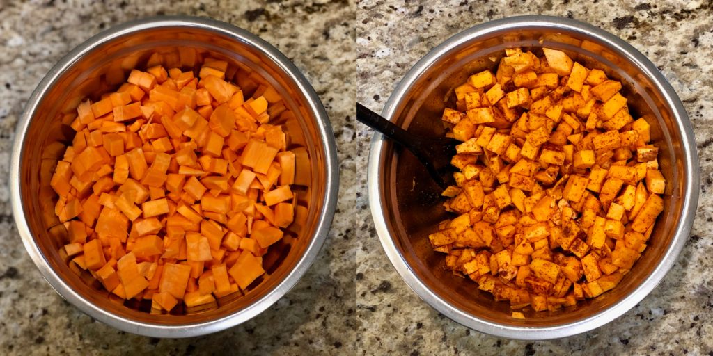 - 2 large sweet potatoes, peeled and diced